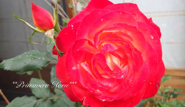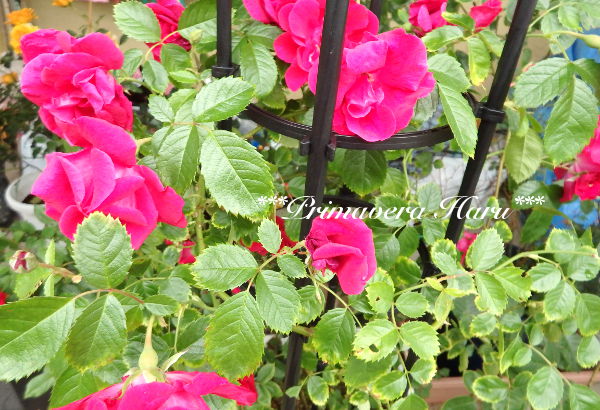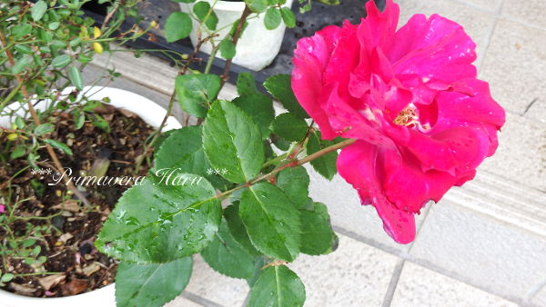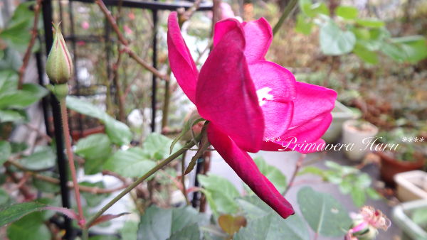 これも同じくレンゲロースから、つるバラなので上と同じく初めて蕾をつけ開花しました。