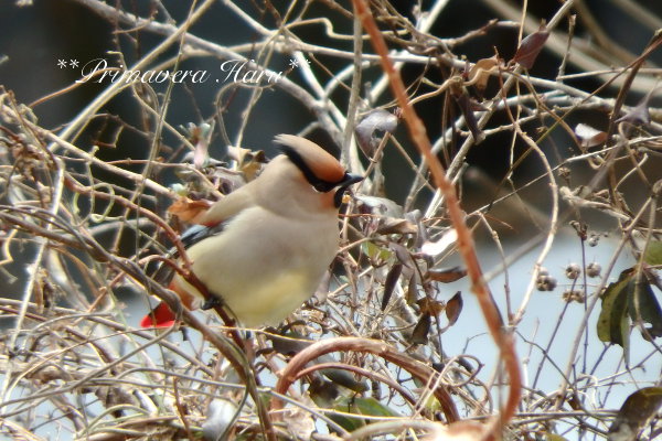 いつも見かける野鳥以外に久しぶりに見かけたヒレンジャク。丁度タイミングよく撮れました。